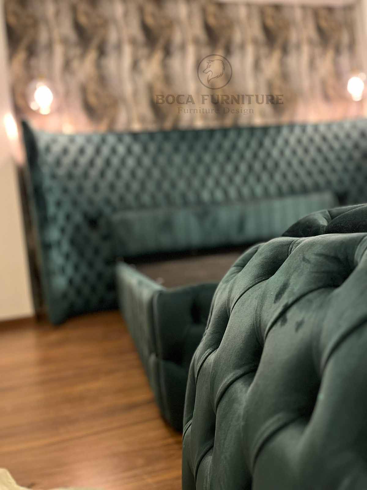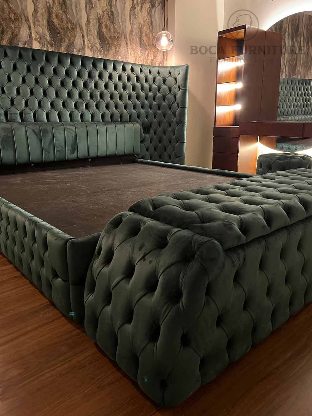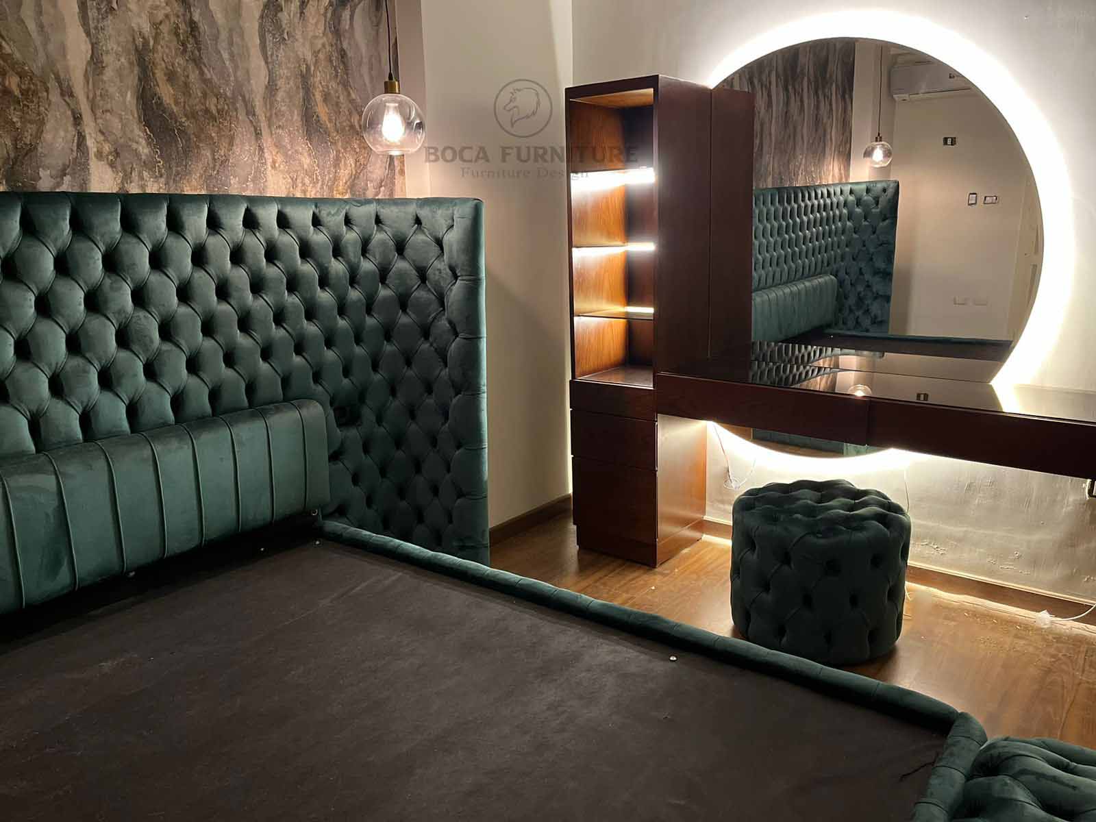 غرفة نوم مكونة من سرير دولاب تسريحه وبف غرفة نوم مصنعه من الخشب الزان الاحمر الرومانى بطابع عصرى