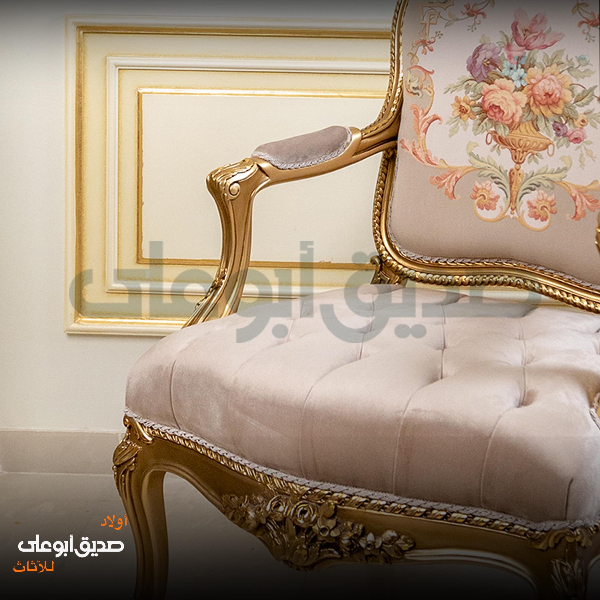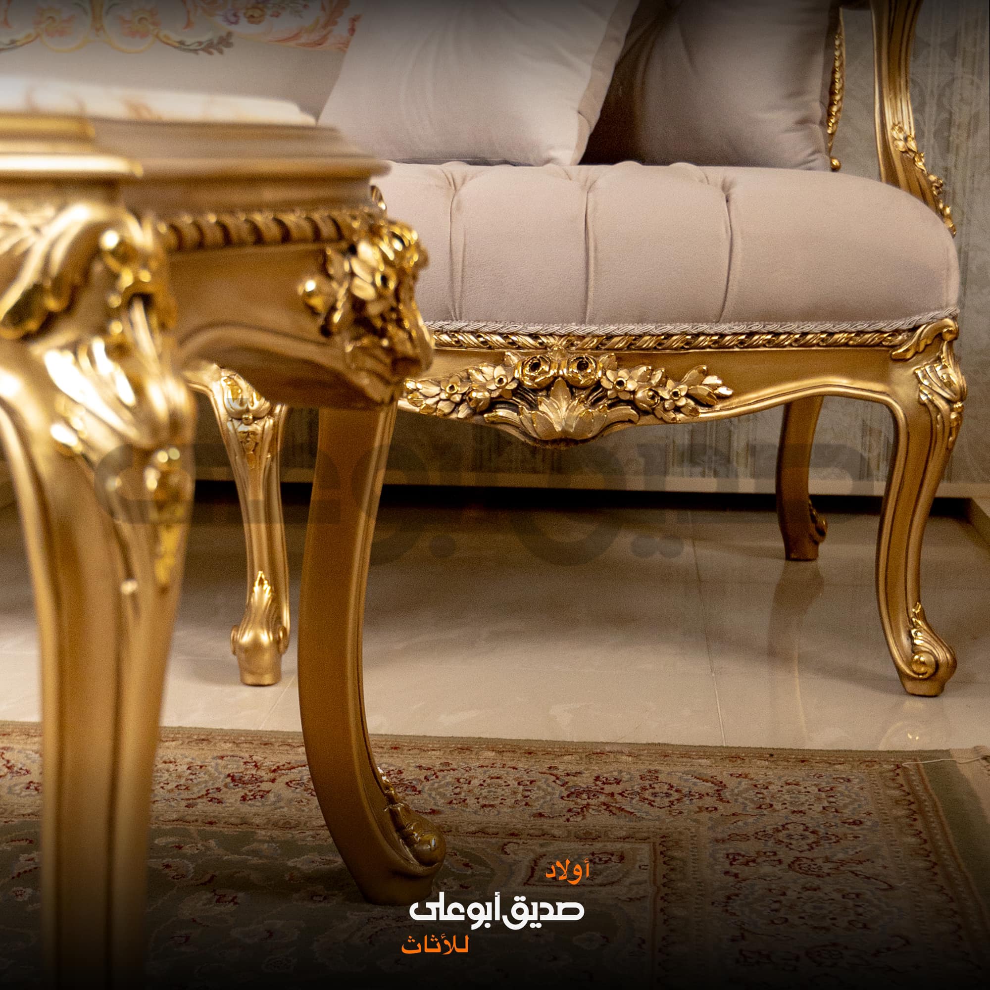 صالون مكون من كنبه كبيرة 3 مقعد مع 4 فوتيه وترابيزة من الرخام صالون مصنع من الخشب الزان الروماني بطابع كلاسيكى مميز